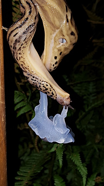 In der nächsten Phase der Paarung umschlingen sich die Fortpflanzungsorgane der beiden Schnegel und bilden gemeinsam eine blumenartige Struktur, in der die eigentliche Begattung stattfindet, bei der Spermatophoren, also Samenpakete, ausgetauscht werden.