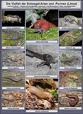 Vielfalt der Schnegel-Arten und -Formen (Limax). Erste Vorarlberger